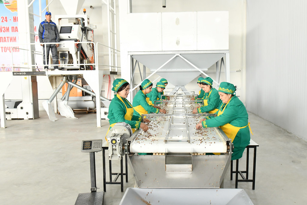 Раванди омодасозии маҳсулот дар хатти истеҳсолии корхонаи мазкур аз шустани меваи хушк оғоз гардида, ба навъҳо ҷудову коркард ва ниҳоят дар қуттиҳои махсус бастабандӣ кардани он анҷом меёбад.