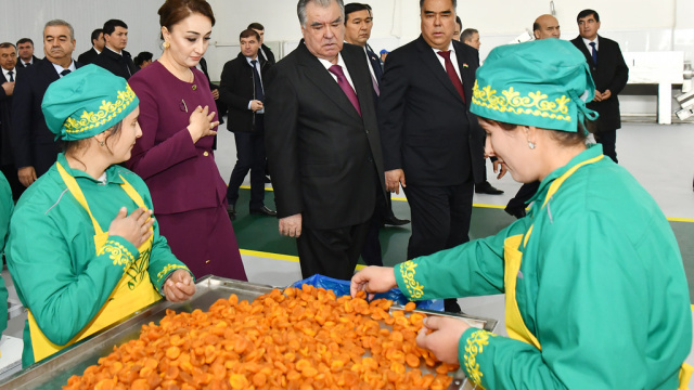 Сарвари давлат муҳтарам Эмомалӣ Раҳмон бо имкониятҳои истеҳсолӣ ва хатҳои технологие, ки барои коркарди меваи тару тоза ва истеҳсоли маҳсулоти хушк истифода мешавад, шинос шуданд.