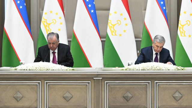Пас аз мулоқоту музокироти сатҳи олӣ ва маросими имзои санадҳои нави ҳамкорӣ сарони ду давлат муҳтарам Эмомалӣ Раҳмон ва муҳтарам Шавкат Мирзиёев нишасти матбуотӣ оростанд.