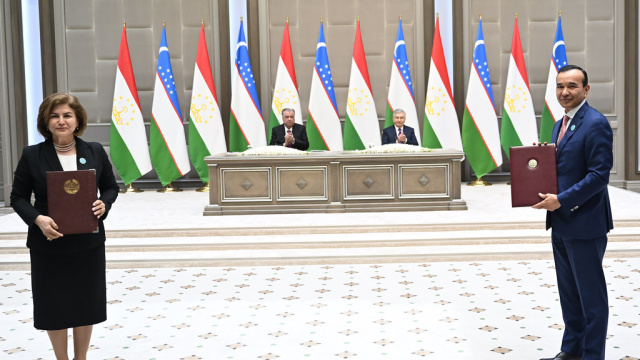 Пас аз анҷоми мулоқоту музокироти сатҳи олии Тоҷикистон ва Узбекистон бо иштирок ва дар ҳузури Сарони давлатҳо маросими имзои санадҳои нави ҳамкорӣ сурат гирифт.